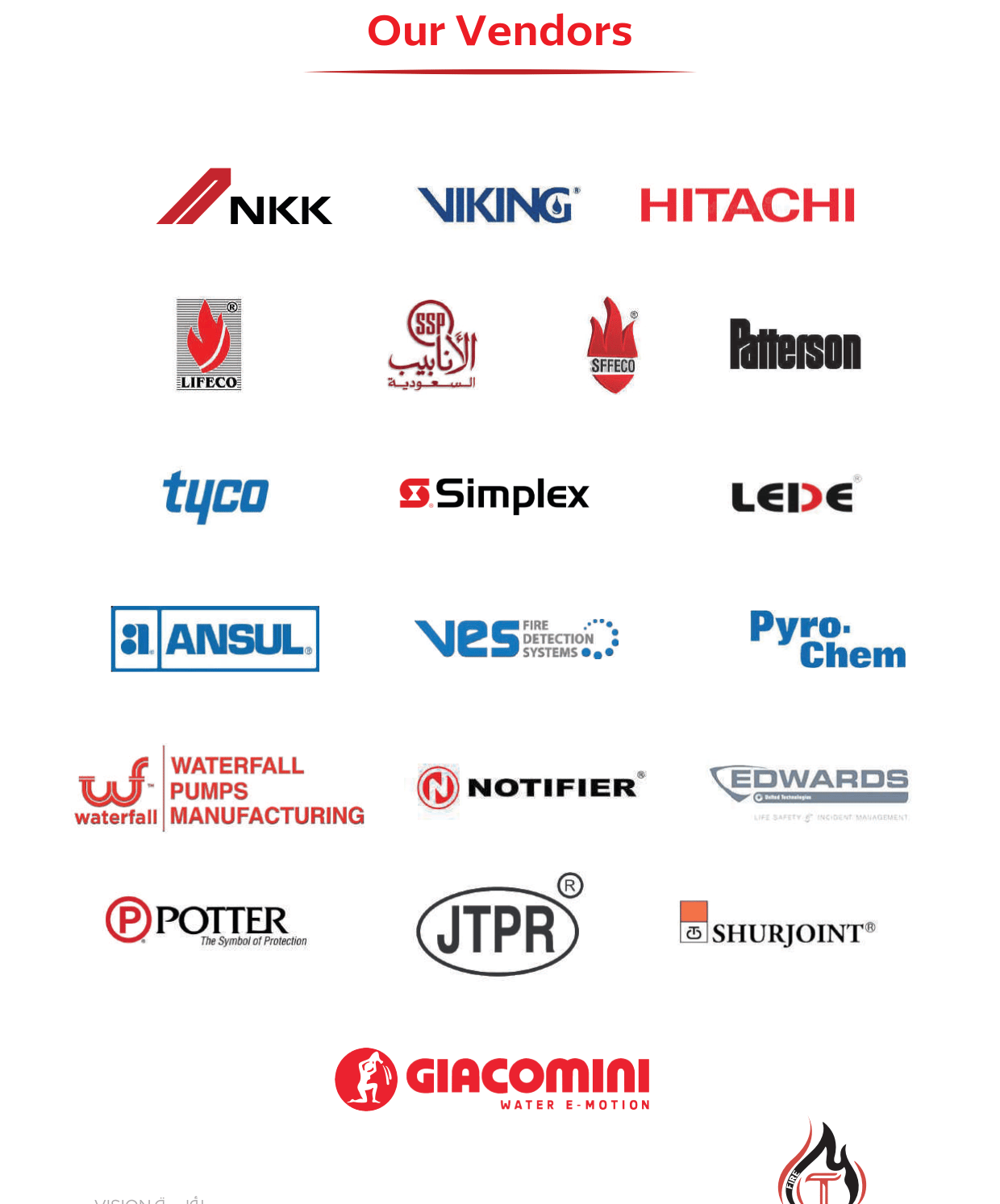 نحن شركة متخصصة في مجال انظمة الحماية والكشف عن الحرائق ولدينا فريق ذو خبرة واسعة في هذا المجال ونعمل طبقا للاكواد والمعايير المعتمدة ونقدم مجموعة متكامله من الخدمات لتناسب حاجة العملاء وتنال رضاهم ( تصميم- توريد - تركيب ) لكافة أنظمة الاطفاء والكشف عن الحريق